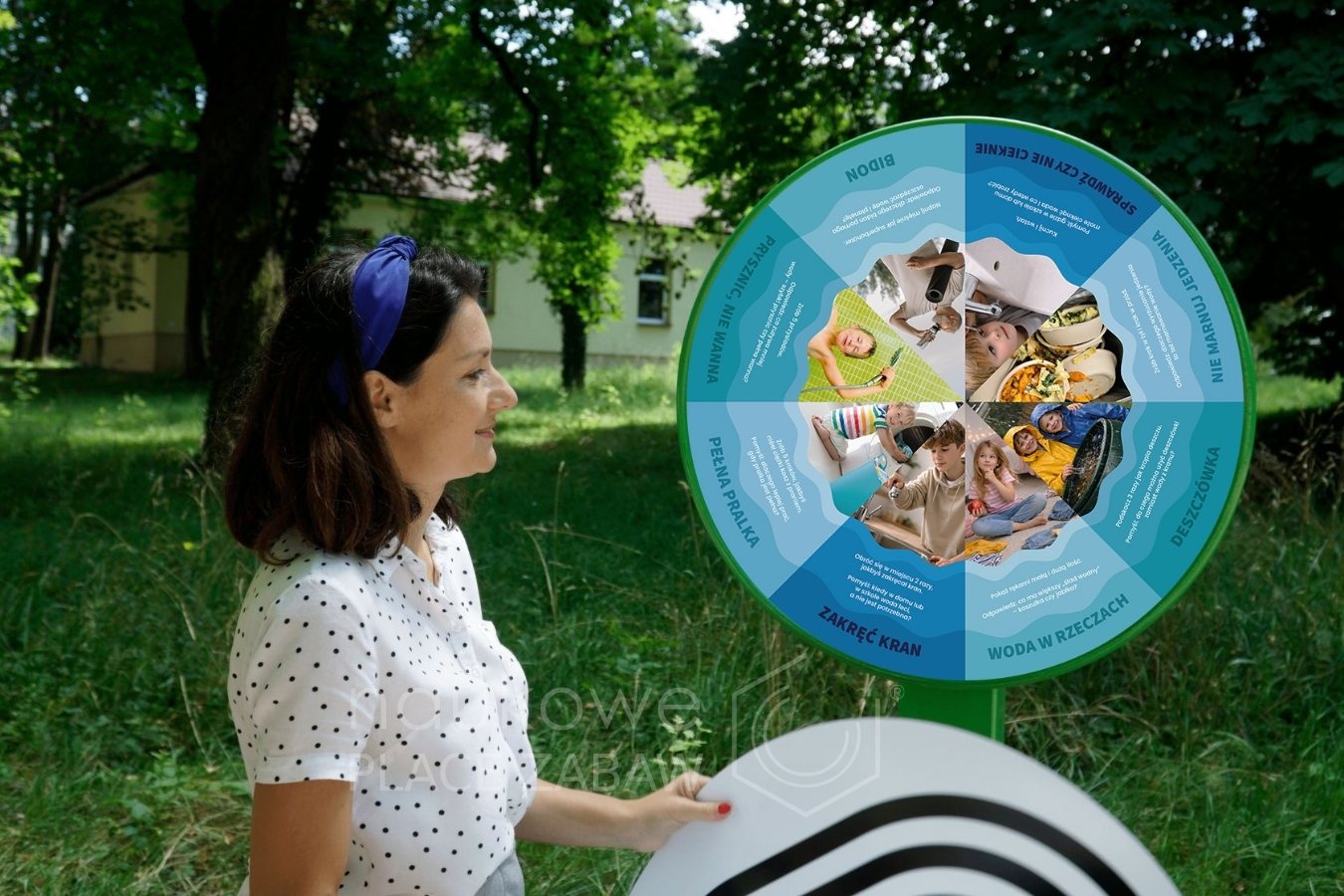 To terapeutyczno – edukacyjne urządzenie w formie gry, oparte na mechanizmie losowania zadań związanych z codziennym oszczędzaniem wody. Dziecko kręci kołem i wykonuje wylosowane zadanie.