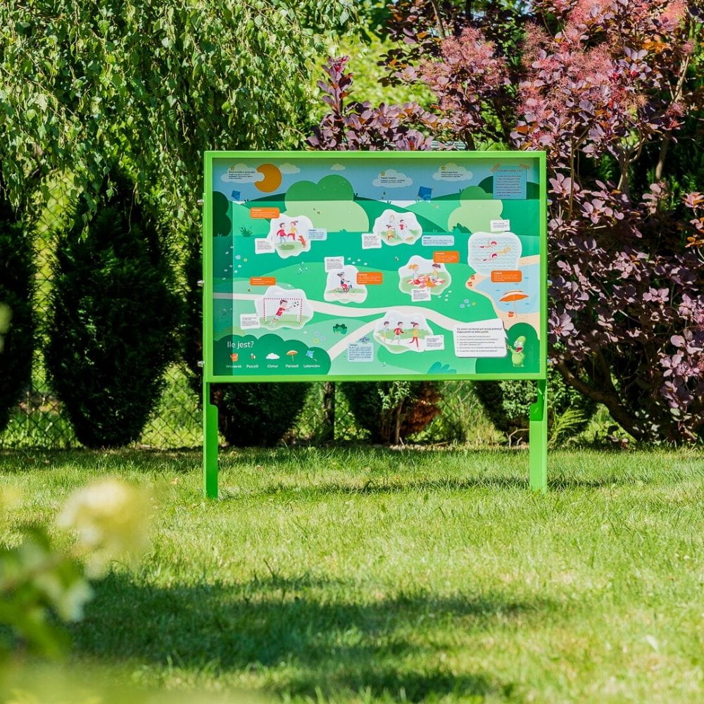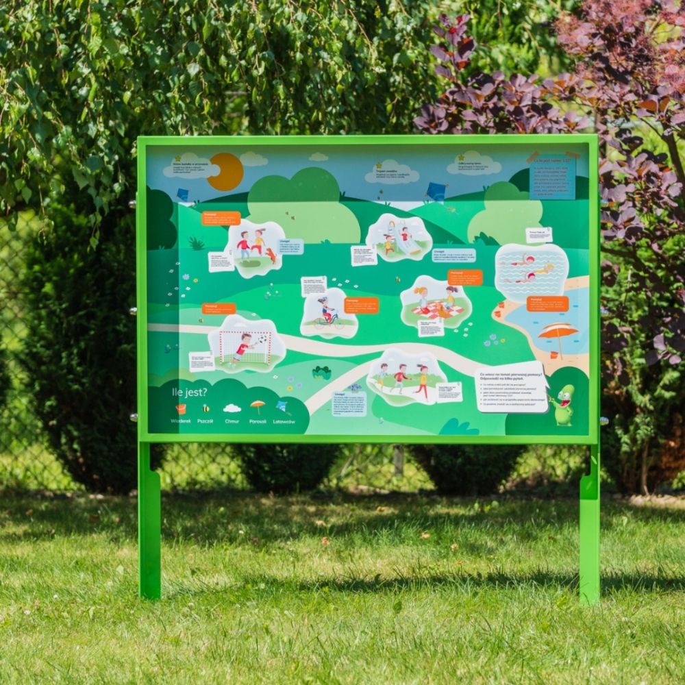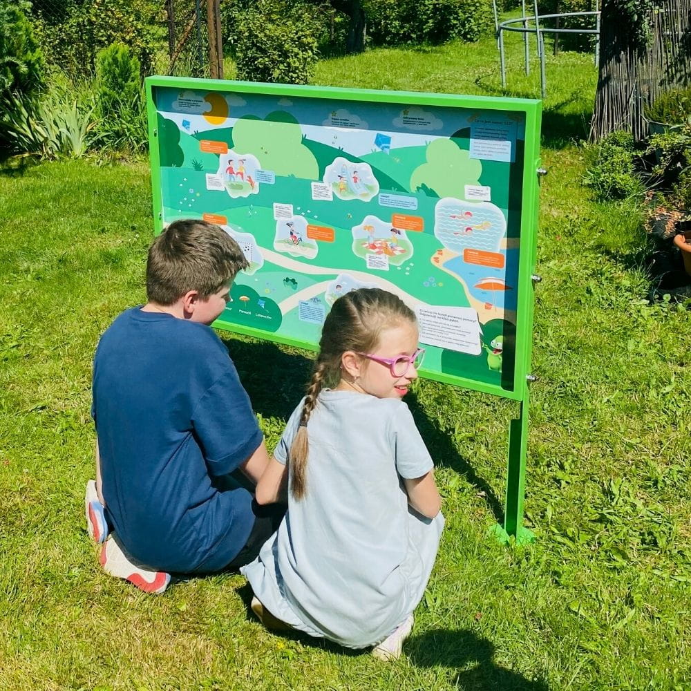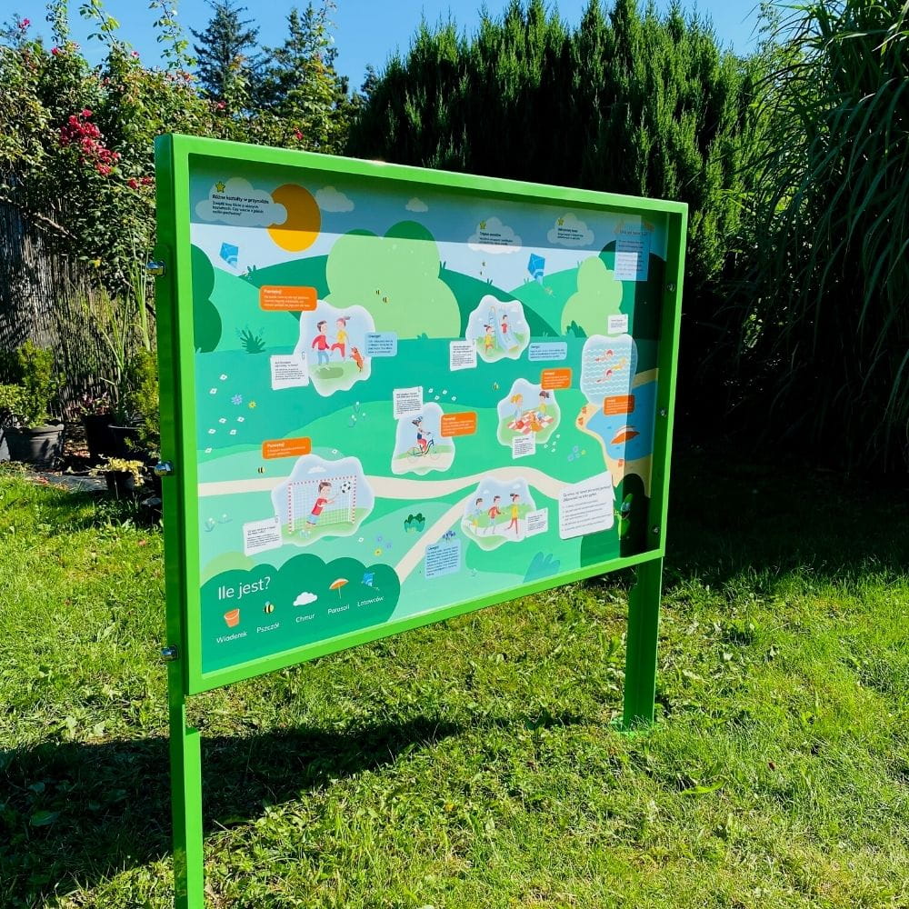 - Swobodna zabawa – tablice edukacyjne sprawdzają się jako pomoc dydaktyczna w ogrodzie, a także jako miejsce do swobodnej zabawy dla dzieci. Funkcjonują także bez pomocy nauczyciela.