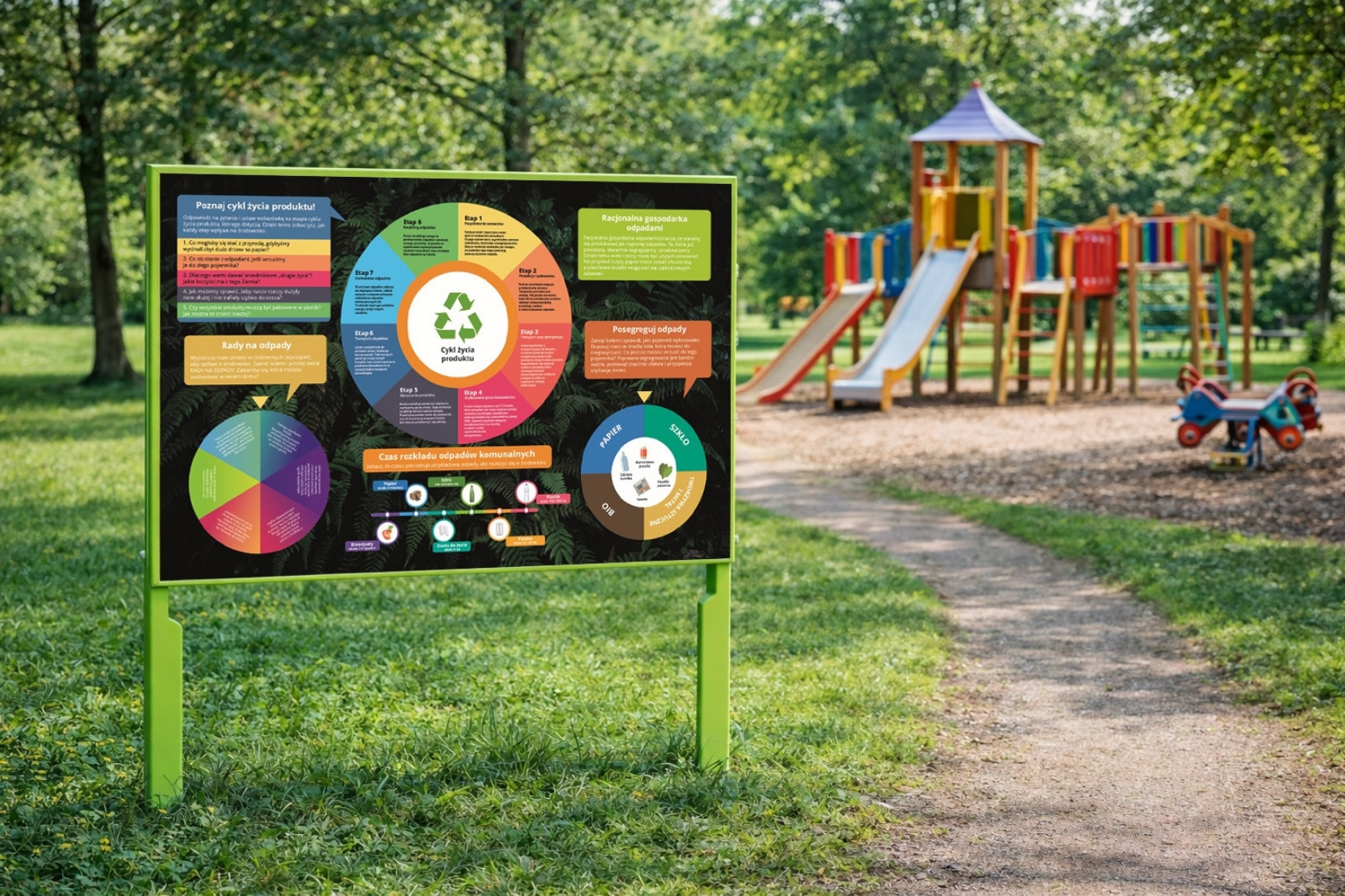Tablica edukacyjna „Cykl życia produktu” to nowoczesne i praktyczne narzędzie dydaktyczne, które w prosty i atrakcyjny sposób uczy dzieci, czym jest recykling, jak długo rozkładają się odpady i jak prawidłowo segregować śmieci. Dzięki czytelnej grafice, kolorowym infografikom i interaktywnemu elementowi (kołu losującemu!), dzieci chętniej zapamiętują ekologiczne nawyki i uczą się odpowiedzialności za środowisko.
